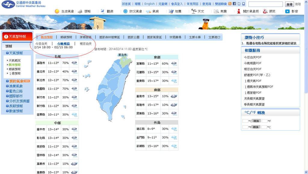 讓我們先上一下氣象局網站看一下今晚的天氣預測,全台均溫11-12度,全台汽車旅館訂房率已經高達98%的今晚,叫人何去何從?(房間訂好的就乖乖聽農民曆的話,有什麼事等十二點以後再說喔!)